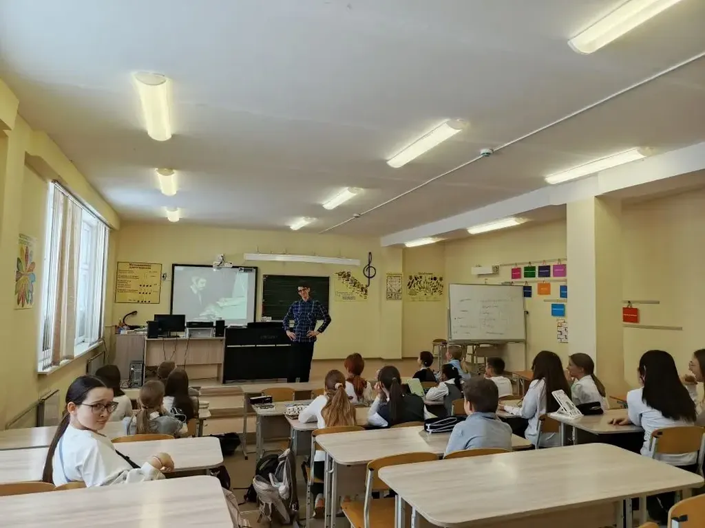 Советскому и российскому композитору Александру Зацепину исполнилось 100 лет. За свою долгую карьеру он написал музыку к десяткам фильмов, подарил стране множество популярных песен, пережил эмиграцию и тяжелые личные утраты, но продолжил работать и остался одной из самых заметных фигур отечественной киномузыки. На уроках музыки ребята с интересом прослушали самые популярные мелодии и песни знаменитого композитора, узнали много интересных фактов из творческой жизни любимого разными поколениями композитора. Данил Сергеевич в доступной форме представил информацию для обучающихся 5-7 классов о талантливом долгожителе в искусстве.