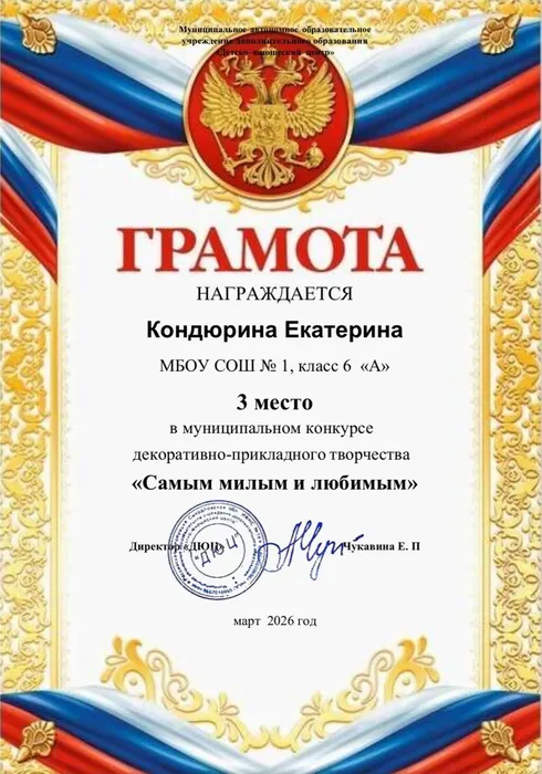 3 место - Кондюрина Екатерина, 6 «Б» класс