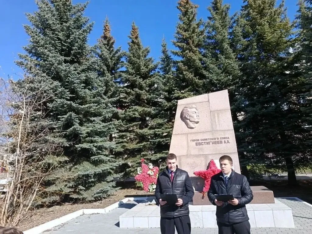 Линейка Памяти у мемориала Героя Советского Союза А. А. Евстигнеева