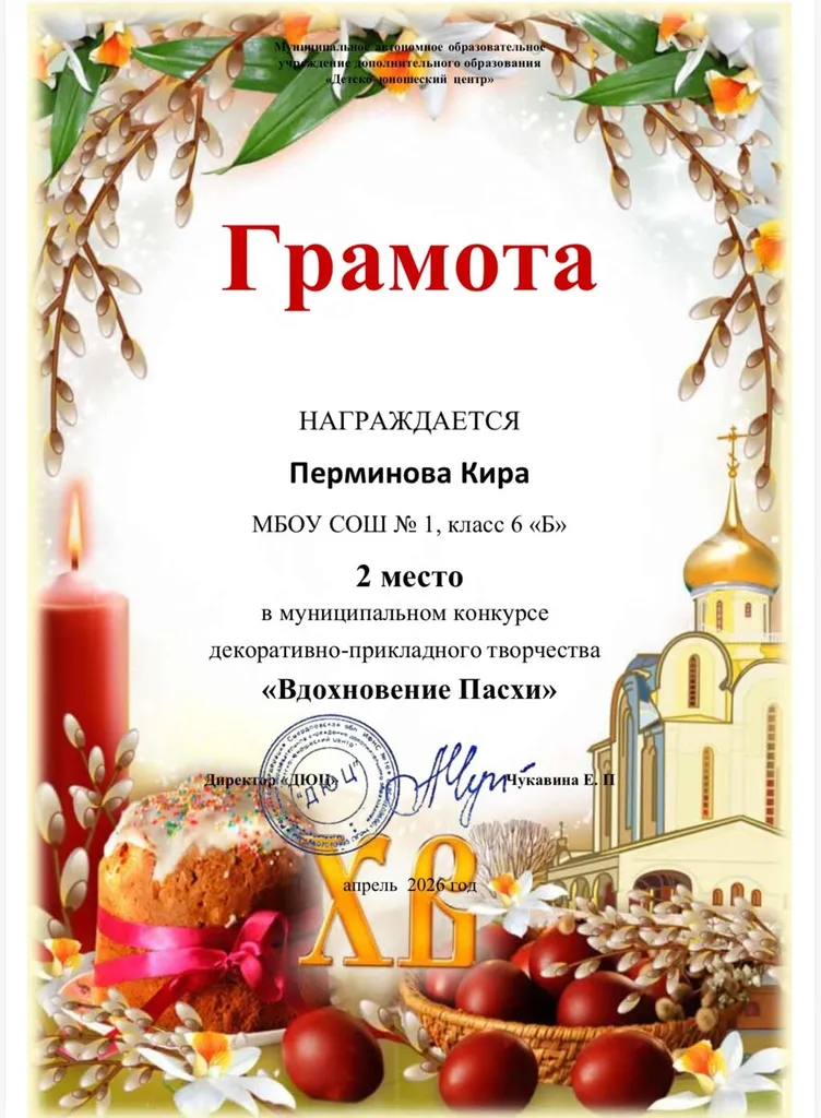 В «ДЮЦ» прошёл муниципальный детский конкурс декоративно-прикладного творчества «Вдохновение Пасхи» и учащиеся нашей школы приняли в нем участие.
